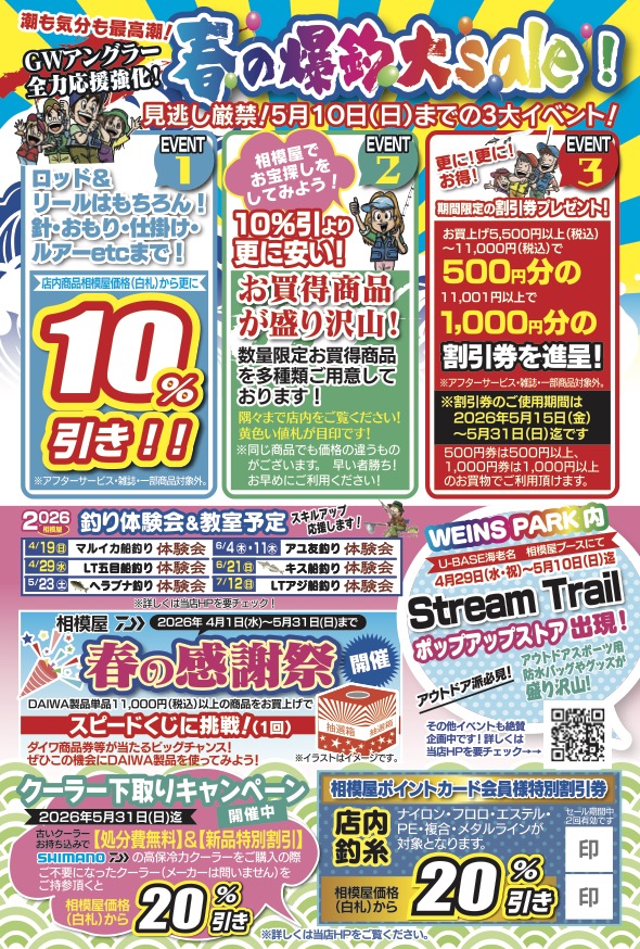 2026年5月10日(日)まで!春の爆釣大セール開催!!