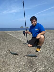 大島、釣り人はいつもより少なめのようでした。売店下の瀬の方が5匹〜6匹位の釣果が数人でした。(午前中)