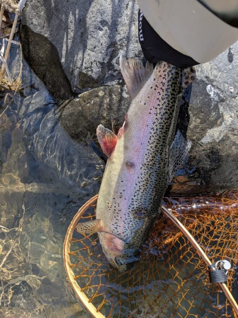 釣果情報2026年3月16日小室様~中津川 田代運動公園/ニジマス2匹/最大53cm~ スタッフ平賀 0分39秒保存する共有: 目次釣行概要タックルコメント釣行概要 【釣行日】 2026年3月15日【釣行時間】 07:00-12:00【場所】 中津川 田代運動公園【釣果】・ニジマス…2匹/最大53cm・ヤマメ…1匹 タックル ・ロッド…ダイワ『エキスパート本流 P-3 75M』 コメント 渓流情報いただきました!中津川の田代運動公園でニジマス、ヤマメの釣果。ニジマスは53cmの良型!エキスパート本流P-3が役立ったようです。他にも0.6のハリスを切って行ったのがいたみたいですよー。情報ありがとうございました。 関連コーナー: 渓流・フライコーナー