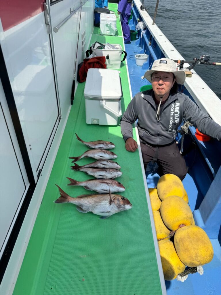 釣果情報頂きました!今年の初釣りのようでめでたい鯛の釣果を頂きました。仕掛けはダブルテーパーでグランドマックス5号7.5m4号4.5mを使用したそうです。探検丸スマートアプリ見てても魚が浮いて来なかったのでつなぎ目に3B、針から1.5mに2B針はダイワサクサク真鯛9号といの事で釣果6枚!流石ですね♪これからの乗っ込み真鯛。更にの大物お待ちしてます!