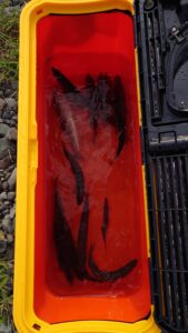 内田さんに釣り後に話を聞くと、掛かった場所などはやはり同じような場所でした。この日は釣りの最中日差しも強く大量の汗をかいたので、大量の水を飲みましたが、熱中症の危険があるので皆さんも水分は充分に用意する事をお願いします。