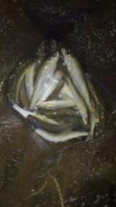 少しのポイント移動だけでも釣れる型、数が変化するので、川の状況見ながらたった数mでもポイントを変えて竿を出すと、より釣りが楽しくなると思います。