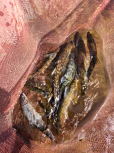 一匹目がなかなか釣れず苦戦しましたが、釣れたあとはポツポツかかりました。暑すぎて半日で終了です。