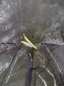 釣果情報鮎ルアー釣果情報2024年6月3日藤岡夫妻様~相模川 上依知・昭和橋下流本流/アユ6匹・6匹~ スタッフ平賀 0分35秒保存する共有:目次釣行概要コメント釣行概要 【釣行日】 2024年6月1日 【釣行時間】 午前中2時間/午後2時間の計4時間 【場所】 相模川 上依知・昭和橋下流本流 【釣果】 ・鮎…6匹/6匹 ・鮎…6匹 コメント 解禁の鮎ルアー釣果報告を頂きました!釣果の他にもバラシが沢山あったようです。これからが楽しみですねー。釣果報告ありがとうございました! 関連コーナー: アユコーナー