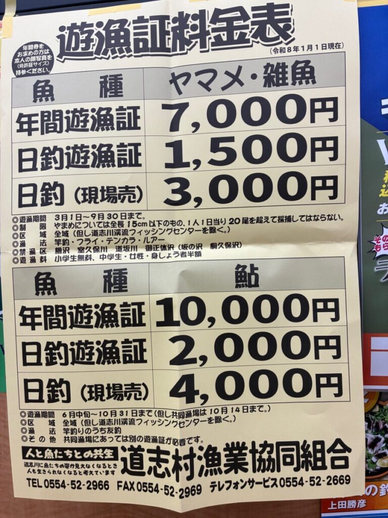 コーナー情報2026年2月14日道志川の入漁券入荷しました。 スタッフ高窪 0分15秒保存する共有: 道志川の渓流釣りの入漁券が入荷しました。道志川の渓流解禁は3月1日となりますので、しっかりと準備して楽しい釣行にしましょう。 (小学生は無料、中学生、女性、身障者は半額となります) 関連コーナー: 渓流・フライコーナー