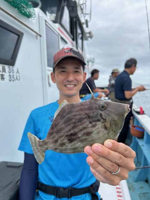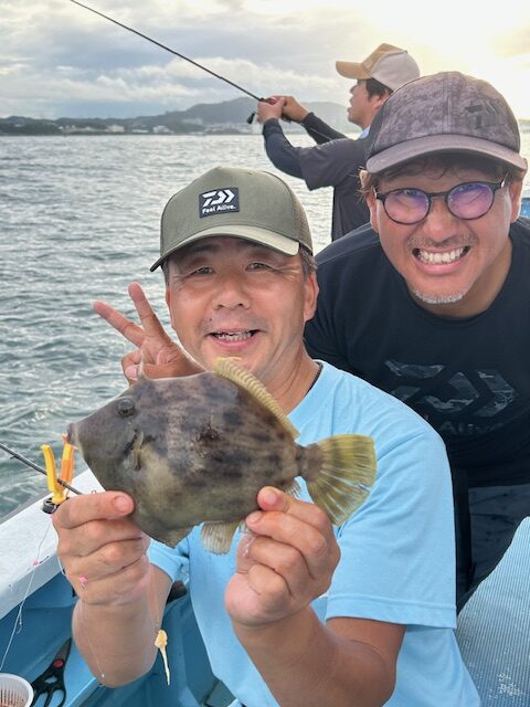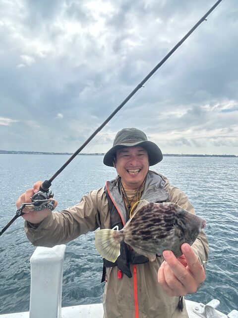相模屋×宮澤大王のダイワカワハギ竿指南&試釣会を開催致しました。当日は前日の時化と朝方迄続いた強風で濁りも入りなかなかの厳しい状況でしたが朝一はゲストの当たりが活発で、そんな中からカワハギを掛けたりと顔が見れたので一安心しましたが、そう甘くなくカワハギの当たりを出していくのが難しそうでした。参加者の皆様には新製品の瞬鋭やEX VSをひと通り使用していただきましたが、特に瞬鋭を使用した段階でカワハギが掛かるという、出来過ぎ展開があり(笑)皆様『瞬鋭の時に釣れる!、Hの方が釣れる、Sの方が釣れる!』など盛り上がりました。釣果平均は7匹位、尺ハギも出たりと皆様には頑張って頂きました!お疲れ様でした!