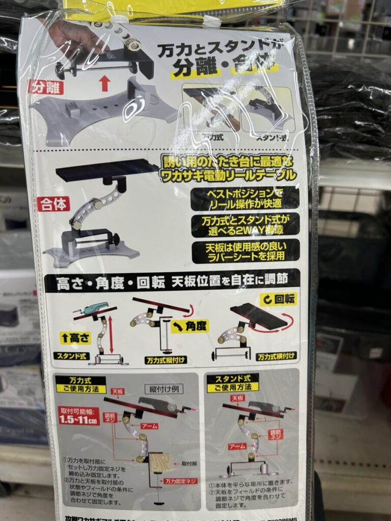 商品情報2025年8月20日プロックス『攻棚ワカサギマルチアクションテーブル万力/スタンド合体版』 スタッフ齋藤 0分21秒保存する共有: 目次商品概要コメント商品概要 【メーカー】 プロックス【商品名】 攻棚ワカサギマルチアクションテーブル万力/スタンド合体版 コメント ワカサギの叩き台になります。ついに一つで二役!ボートには万力、ドームや桟橋ではスタンドを。高さも角度も変えられる優れものです。 関連コーナー: ワカサギコーナー