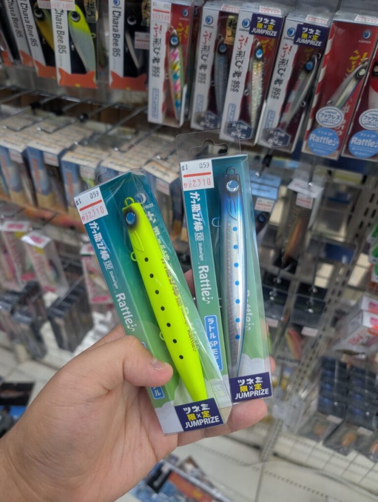 今回紹介するのはジャンプライズ新製品のカッ飛び棒シャローライト、ラトルモデルです!名前の通りシャローエリアをゆっくり巻いて誘うことができるシンキングペンシルとなります!遠浅のサーフや磯場で浅いところを攻めたいときにとても活躍できるルアーです!サーフ以外でも磯場でスキッピングなどでもとても釣れるのでぜひ試してみてください!初回入荷限定の2色も入荷してます!
