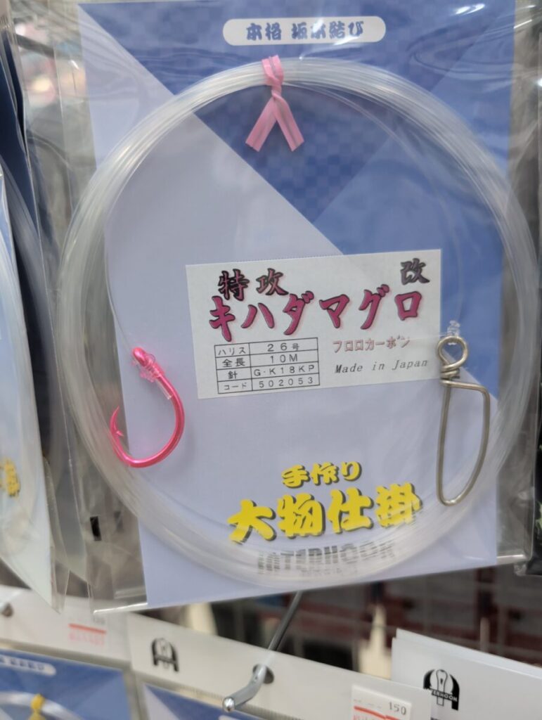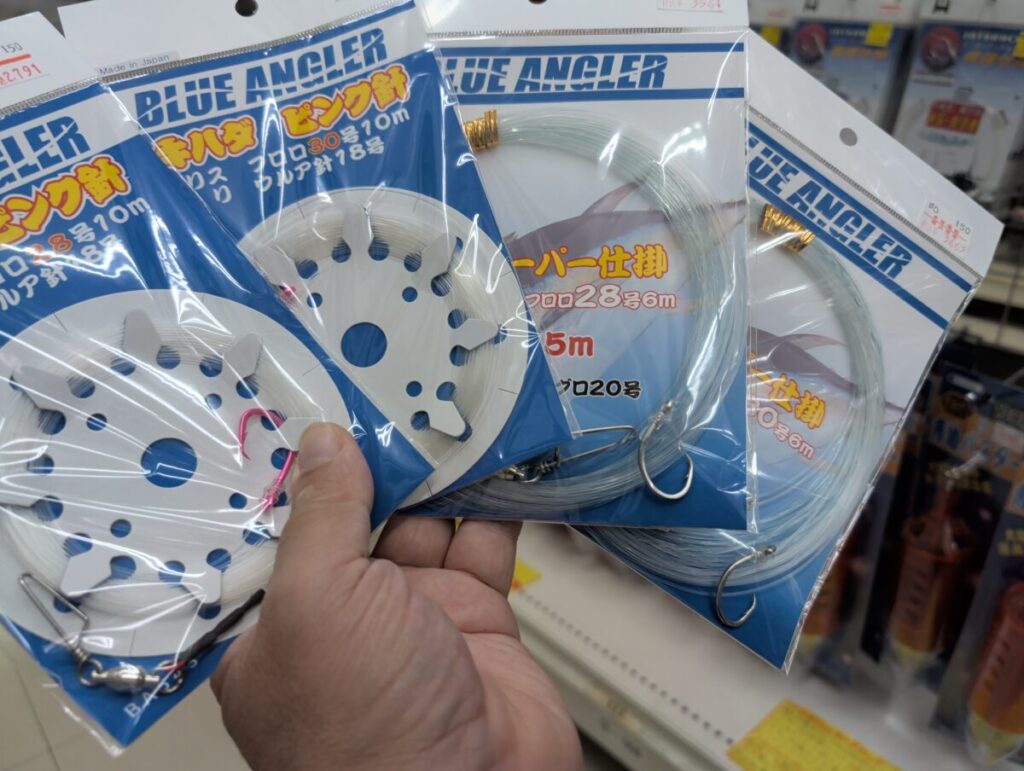 手作り出来る方は是非チャレンジして下さい。針、ハリス、スイベル、天秤、マグロリングなど各種取り揃えております。そして手作り出来ない、また不安な方は是非出来上がった仕掛けもございますのでご利用下さい。インターフック、ブルーアングラー、アミゼスの太ハリスロング仕掛けをご用意しております。50kg.60kg.70kg.80kg.90kg.相模湾レコードを更新の100kg目指すなら今です!!