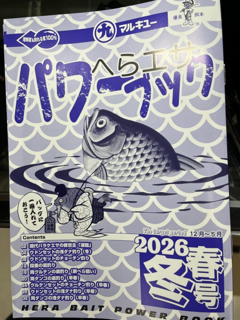商品情報2025年11月29日マルキューへらエサパワーブック入荷しました スタッフ高窪 0分13秒保存する共有: マルキューへらエサパワーブック春冬号が入荷しました。 新製品の瀑麩を含めた配合や釣り方のポイント等最新情報が掲載されています。 是非参考にしてみて下さい。 関連コーナー: ヘラ・鯉コーナー