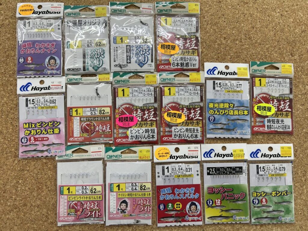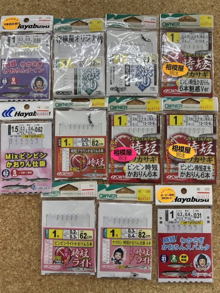 私は仕掛けにかおりんと名前が書いております。全長が短めで、枝スも短めで当たりが出たら掛けやすく分かりやすい仕掛けなので、初心者さんにも玄人さんにもおすすめです。全長が短いのでお子様にも◎
