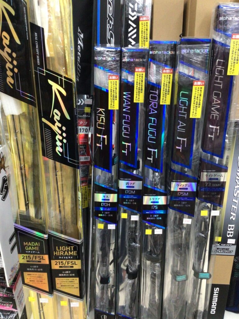 当店でも扱っていますが、全ては置いていません。カイジンシリーズの中でオススメは、ライトヒラメ215FSLとマダイゲーム215FSLです。いずれのロッドブランクもカーボンフルソリッドを採用し、それぞれ調子は違いますが、しなやかさと魚を浮かせるパワーも合わせ持っています。