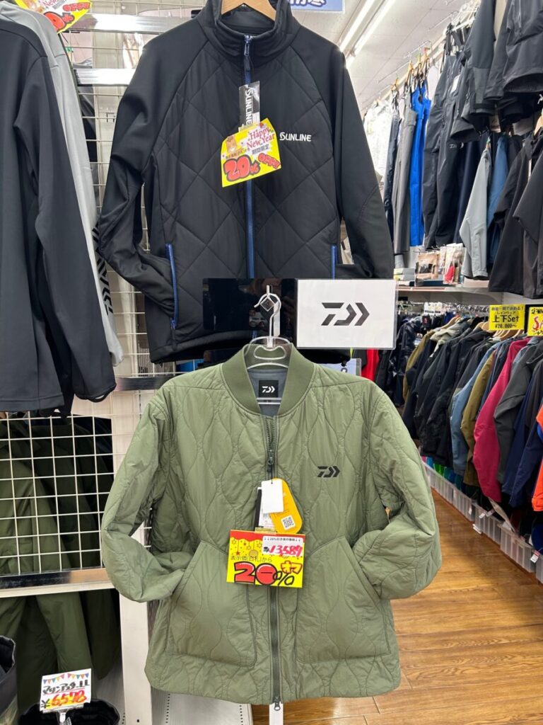 普段使いできるダイワやサンラインのジャケットも割引となっております!!