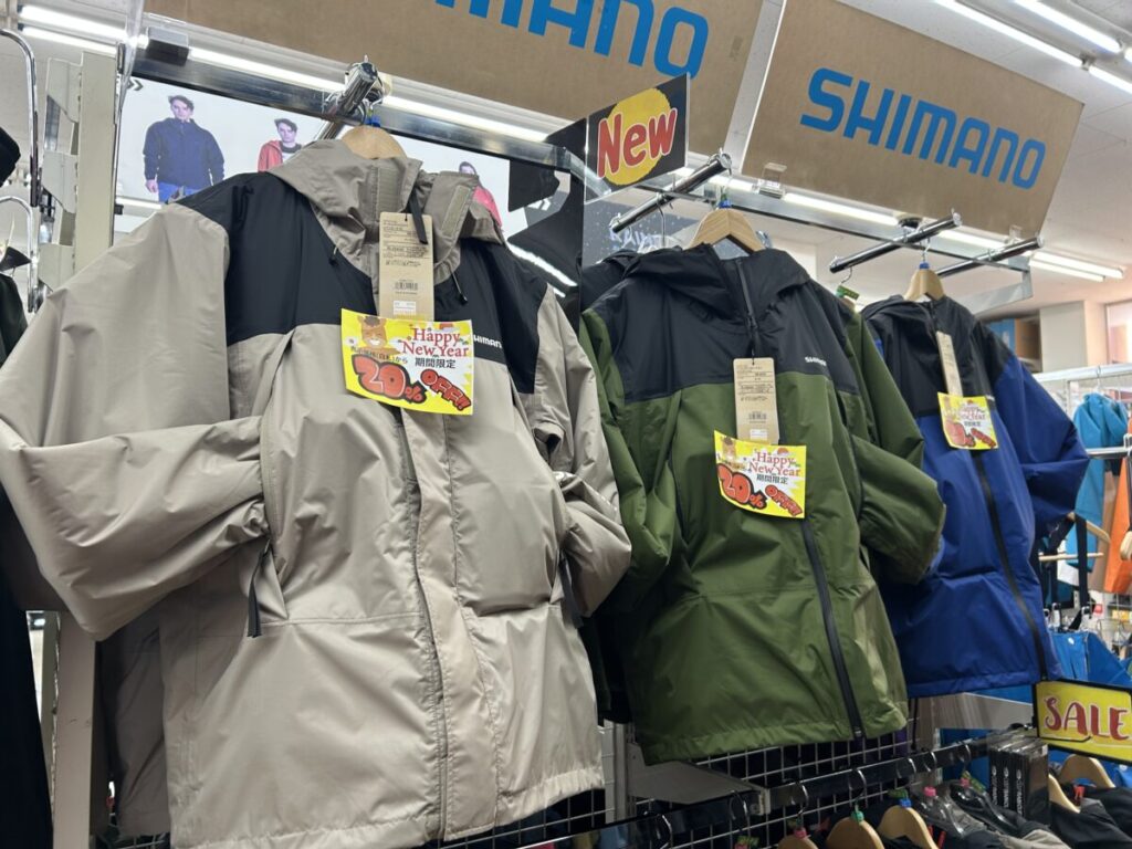 ダイワの防寒ゴアテックスやシマノ の防寒ウェアも白札から20%引きとなっております。(一部対象外あり)