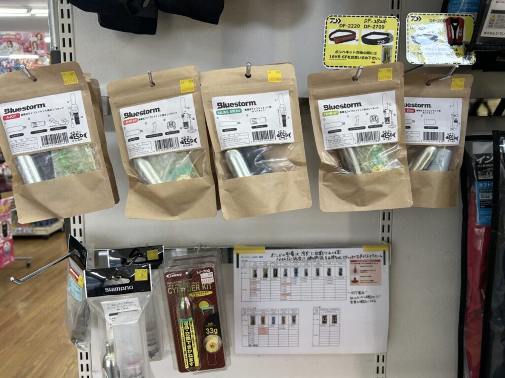 自動膨張や交換用ボンベの販売もしております。不明な点がございましたら従業員までお声掛けください。
