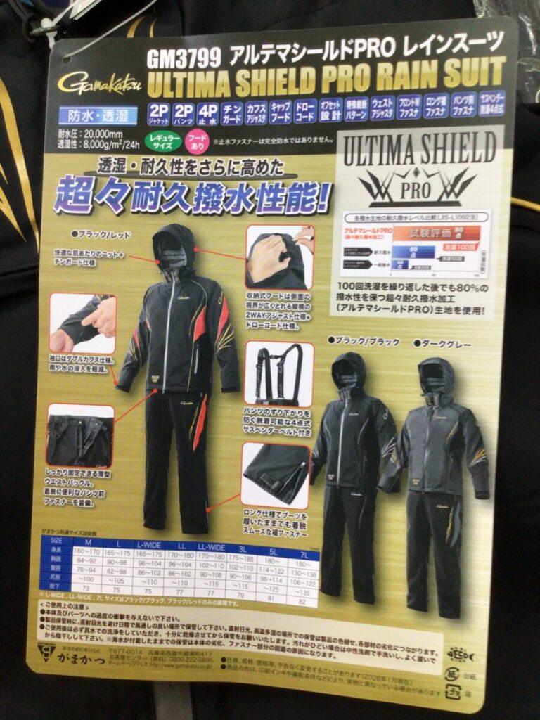 商品情報2026年4月14日磯釣りファンにおすすめ!がまかつ『GM-3799 アルテマシールドPROレインスーツ』 スタッフ小澤 0分25秒保存する共有: 目次商品概要コメント商品概要 【メーカー】 がまかつ【商品名】 GM-3799 アルテマシールドPROレインスーツ コメント がまかつの最新レインスーツ入荷しました! 生地にアルテマシールドPROを採用し、更なる耐久撥水性を発揮しています! がまかつファンの方!磯釣りファンの方にオススメです! 関連コーナー: ウェアコーナー, 磯コーナー