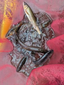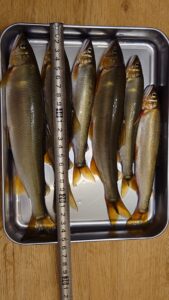 今日は人が多くてびっくりしました。瀬肩のトロに入りましたが、オトリ缶を川から引き上げる時にフタが開いてしまい、本日最大サ