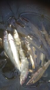 午前中は追いが悪く3匹でした。午後は一緒に行ったNさんから泳がせ釣の、アドバイスを受けて、コンスタントに釣れました。相模