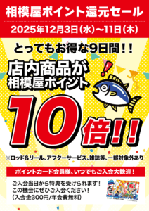 2025年12月3日(水)〜11日(木)相模屋ポイント還元セール開催!
